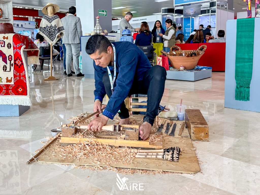 El Estado de México sede de la AeroExpo, tuvo una participación cultural importante con la presencia de artesanos mexiquenses, quienes mostraron los productos que fabrican y comercializan, así como la demostración de la forma de trabajar la madera, para elaborar molinillos.
