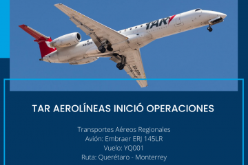 Un día como hoy 14 de marzo pero de 2014, TAR Aerolíneas (Transportes Aéreos Regionales), inició sus operaciones con un vuelo que conectó la ciudad de Querétaro con Monterrey.