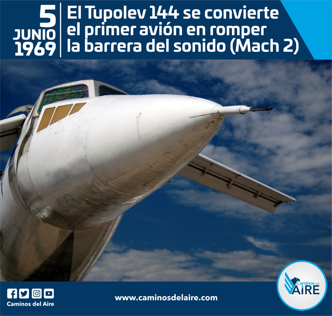 Un día como hoy 5 de junio pero de 1969, el Túpolev 144 se convirtió en el primer avión de pasajeros, en romper la barrera del sonido (MACH 2).