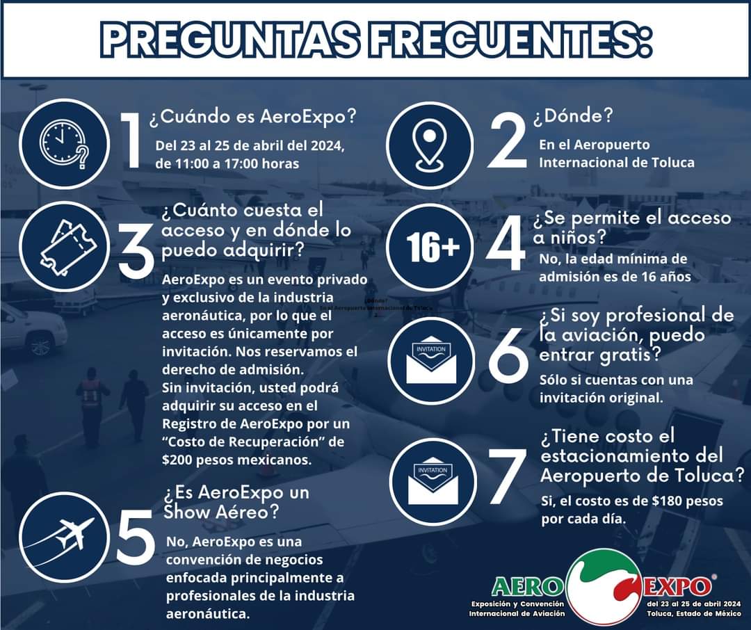AeroExpo 2024 se realizará del 23 al 25 de abril de 2024, en un horario de 11:00 a.m. a 5:00 p.m., en el Aeropuerto Internacional de Toluca (AIT). Te compartimos la infografía, en la...
