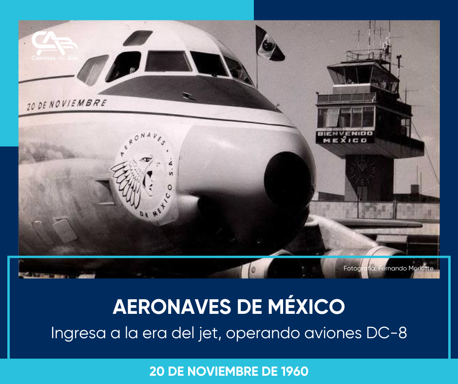 Fue un 20 de noviembre de 1960, cuando Aeronaves de México ingresó la era del jet realizando un vuelo en su ruta México – Nueva York, aprovechando la conmemoración del 50 aniversario del inicio...
