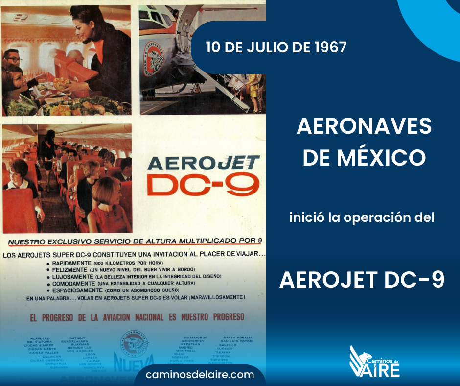 El 10 de julio de 1967, Aeronaves de México (AeroMéxico), inició la operación de itinerario con el Aerojet DC-9, fabricado por McDonnell Douglas. La primera ruta operada con el avión matrícula XA-SOA, fue México...