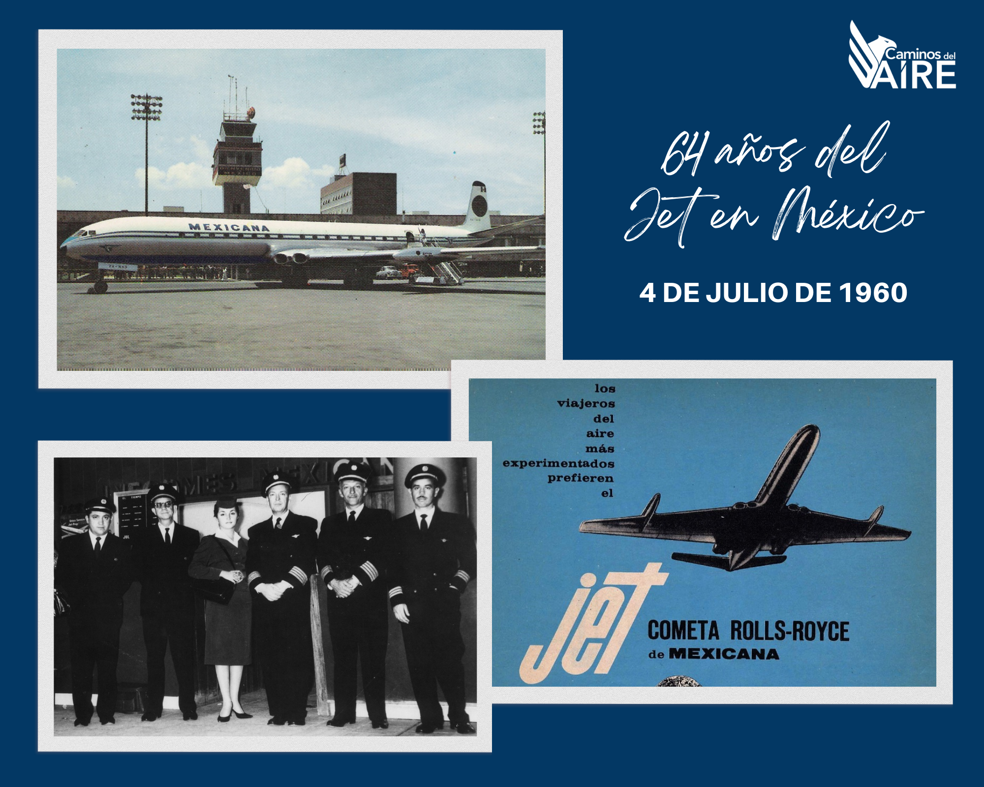 En 1960 se establecieron los primeros vuelos comerciales regulares con equipo a reacción en rutas entre México – Estados Unidos y es la Compañía Mexicana de Aviación, la que tiene el honor de ser...