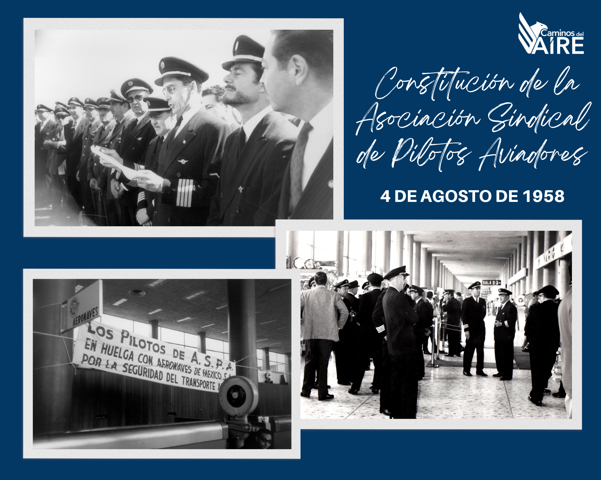 La Asociación Sindical de Pilotos Aviadores, ASPA de México, queda constituida oficialmente el 4 de agosto de 1958. Teniendo como antecedente la Liga de Pilotos en 1945, con la que los tripulantes de vuelo...