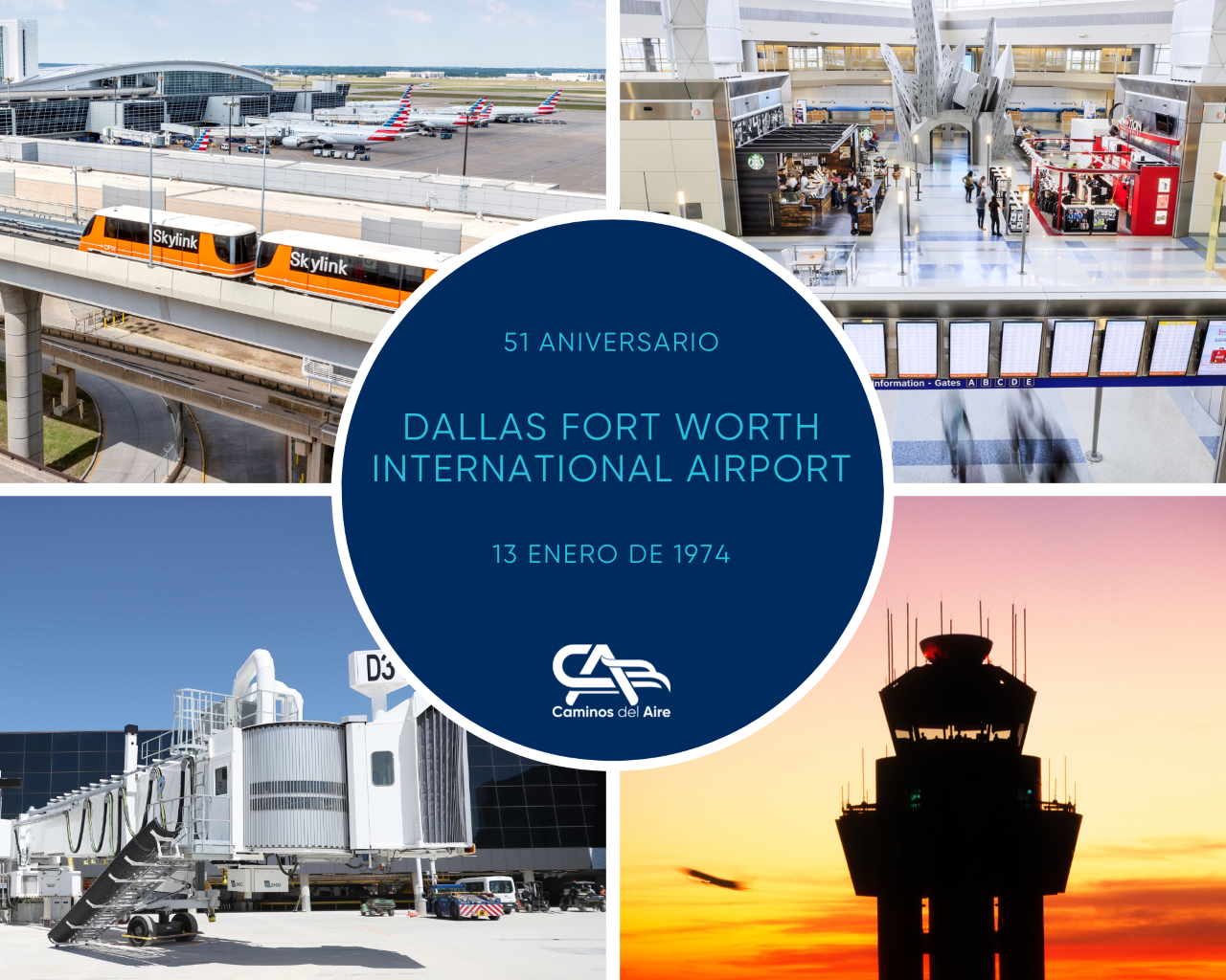 Un día como hoy 13 de enero pero de 1974, el Aeropuerto Internacional Dallas Fort Worth (DFW), inició sus operaciones. ¡51 años de conectar sus pasajeros con el mundo!