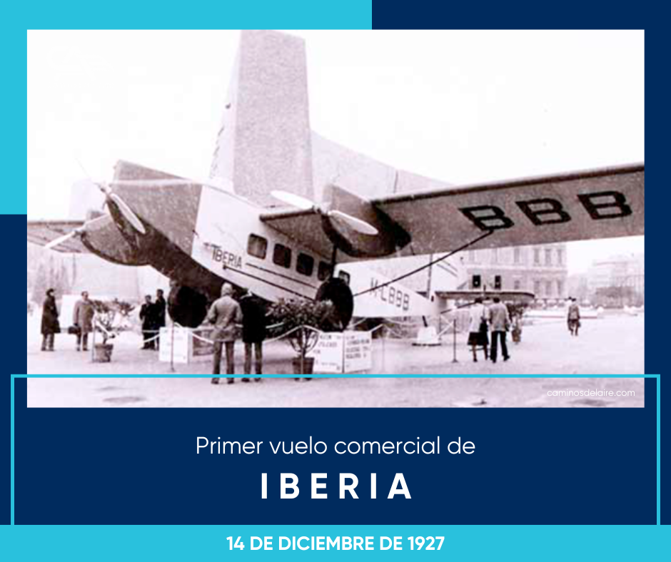 Un día como hoy 14 de diciembre pero de 1927, Iberia realizó el primer vuelo comercial de su historia. La ceremonia inaugural, fue presidida por el Rey Alfonso XIII. El primer vuelo fue realizado...